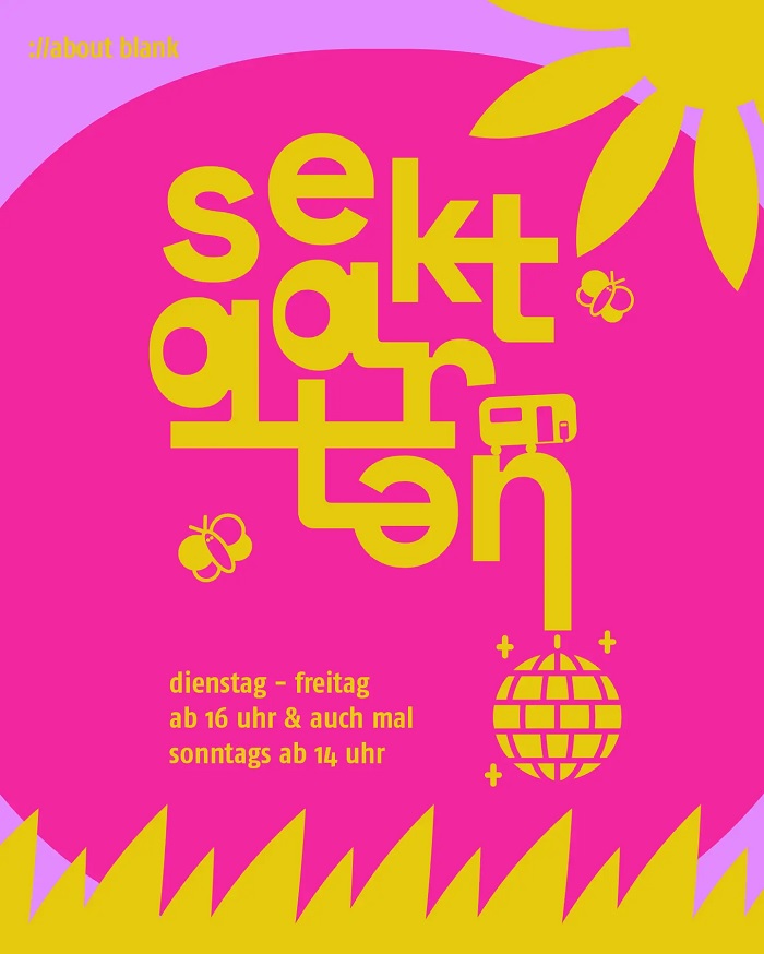 ://clubgarten, die partytaugliche alternative zum ://sektgarten ohne kids, hunde und polizei, dafür aber mit mehr club, mehr nebel, mehr vom guten leben. organisiert von unserer tür-crew wird der ://clubgarten unter dem titel sekturity - heute leider dicht! zur kneipe mit bier vom fass, tischkicker und feucht fröhlichem umtrunk in der sonntagssonne. dazu werden die ://blank bouncer allstars die bretter vor der gartenhütte neu verlegen - oder, sollte es tröpfeln, im wettererprobten gartenzelt. zwischen hip hop, miami bass, detroit techno, breakbeats, trance, techno und gabba wird hantiert. außerdem wartet das ein oder andere überraschungsspecial. tragt euch montag schon mal homeoffice ein! fyi: pizza wagen ist offen.