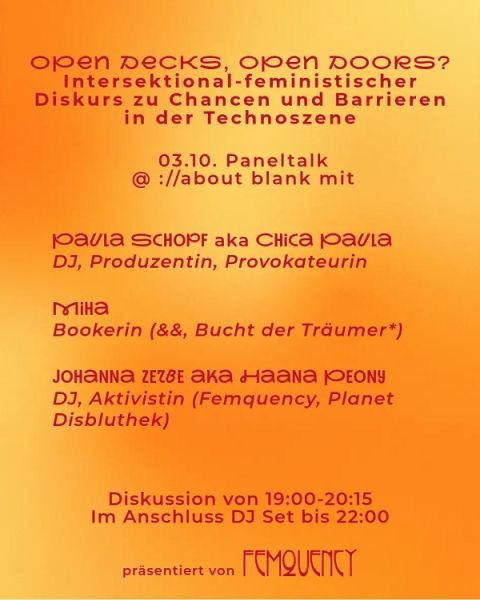 paula schopf aka chica paula (dj & produzentin) // miha (bookerin) // haana peony (dj & aktistin / femquency)