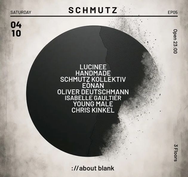 - ://about nie wieder oktober 02.10.2025 // femquency flinta* dj workshop & panel 03.10.2025 // rave for benefits 03.10.2025 // schmutz 04.10.2025, news [://about blank], 01.10.2025