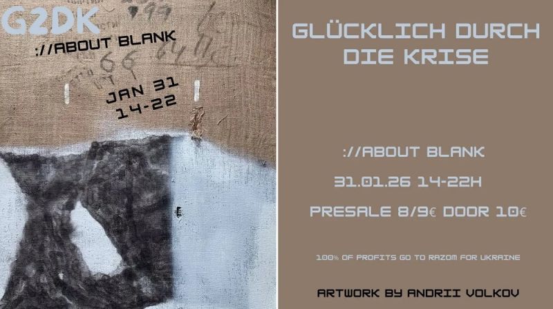 wenn schneeflocken das ostkreuz einzuckern und weiße blätter auf den dancefloor fallen, schlittern wir ab dem frühen samstagnachmittag glücklich mit euch durch die krise. von einem experimentellen modular-set über live-techno bis hin zu einem spontanen anatolischen kassetten-pop-up und hochkarätigen techno-dj-sets: g2dk wollen gemeinsam mit euch in die freie ungezwungene stimmung der raves eintauchen, als techno noch dings war. den tag bespielen überwiegend ukrainische acts, und 100% des gewinns werden an razom for ukraine gespendet.